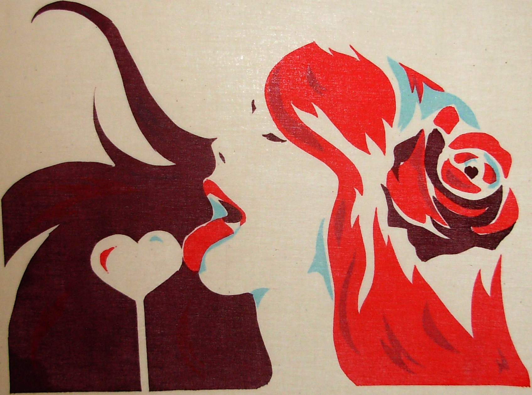 Original silkscreen print on muslin. Stencil cut by hand and printed by hand.